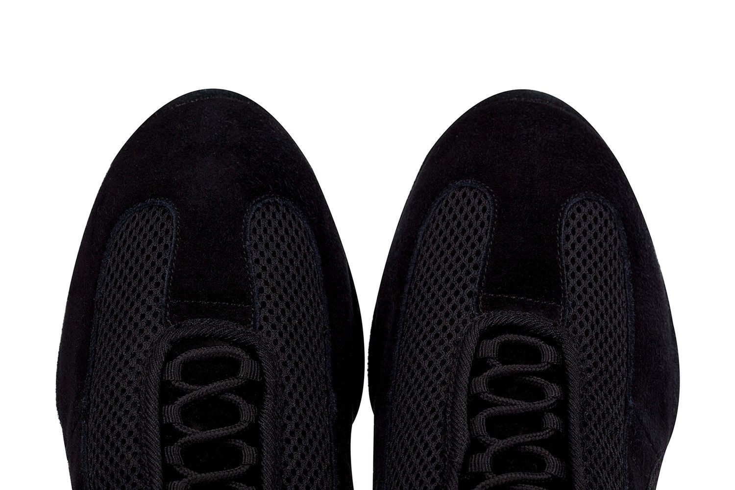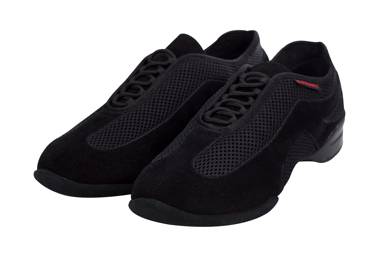 Piele intoarsă neagră și material, talpă divizată, pantofi pentru antrenament. Căptușeală suplimentară din piele de căprioară pe exteriorul pantofului, pentru o protecție suplimentară. Talpa din piele de căprioară. Design nou, elegant, foarte moale și flexibil. Respirabil în toată partea superioară.