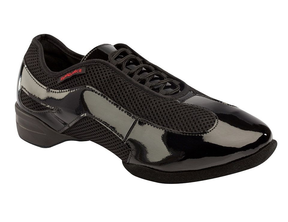 Piele lacuită neagră și material, talpă divizată, pantofi pentru antrenament. Căptușeală suplimentară din piele de căprioară pe exteriorul pantofului, pentru o protecție suplimentară. Talpa din piele de căprioară. Design nou, elegant, foarte moale și flexibil. Respirabil în toată partea superioară.