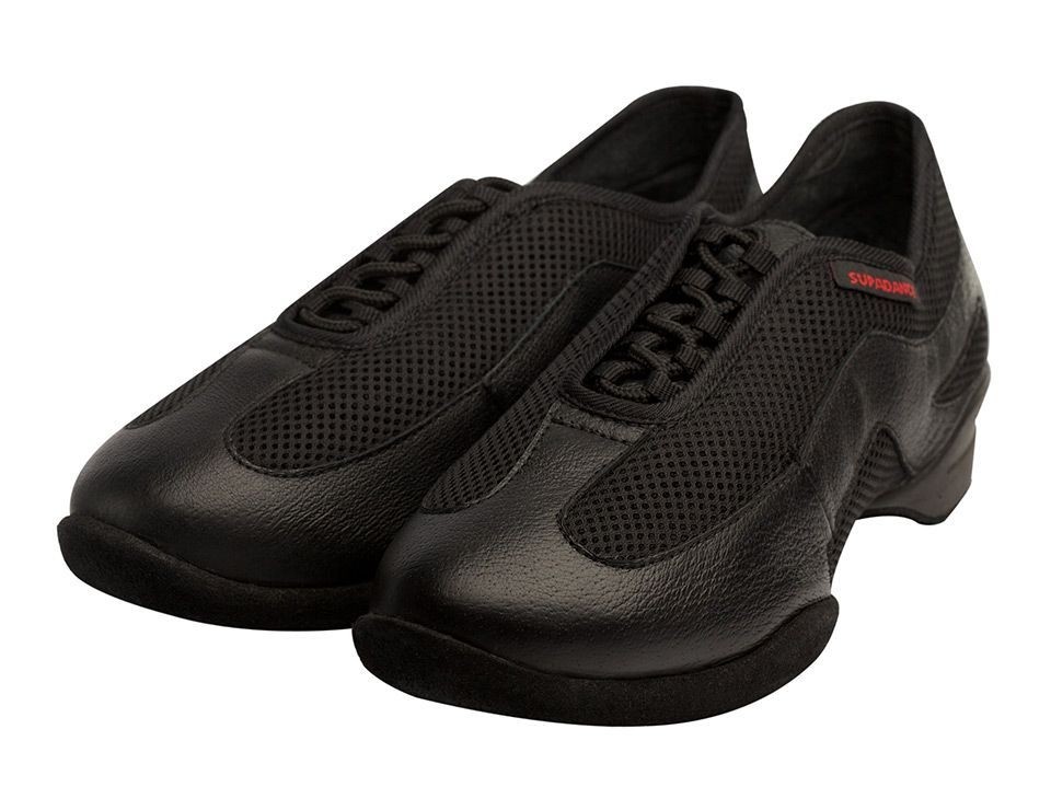 Piele neagră și material, talpă divizată, pantofi pentru antrenament. Căptușeală suplimentară din piele de căprioară pe exteriorul pantofului, pentru o protecție suplimentară. Talpa din piele de căprioară. Design nou, elegant, foarte moale și flexibil. Respirabil în toată partea superioară.