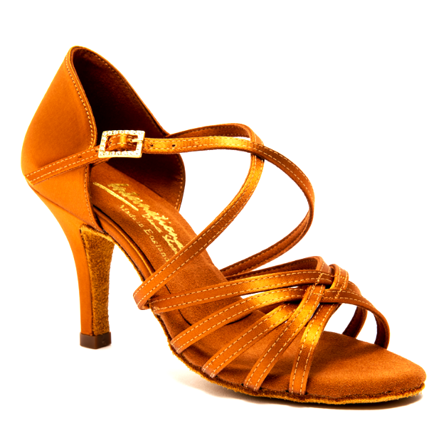 Worn by many of today’s Latin dance professionals, the ‘Flavia’ with a five-strap vamp provides a fine blend of comfort and stability. There is also a strap going underneath the sole for added support for the foot. This style is highly recommended for Latin and Salsa dance shows.