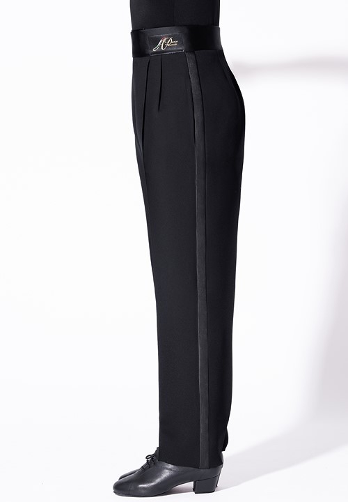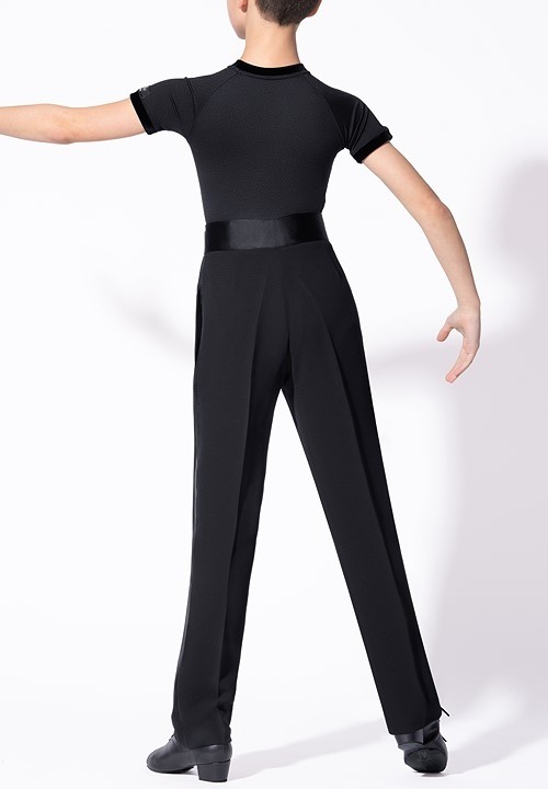 These boy’s dance trousers feature a satin waist and satin binding detailing down the side of each leg. The slim leg design offers a clean silhouette, while the double pleat detailing elevates the look. 1 tuck design Zip closure Hand wash in cold water Design by Armando Made in Italy - Reviews