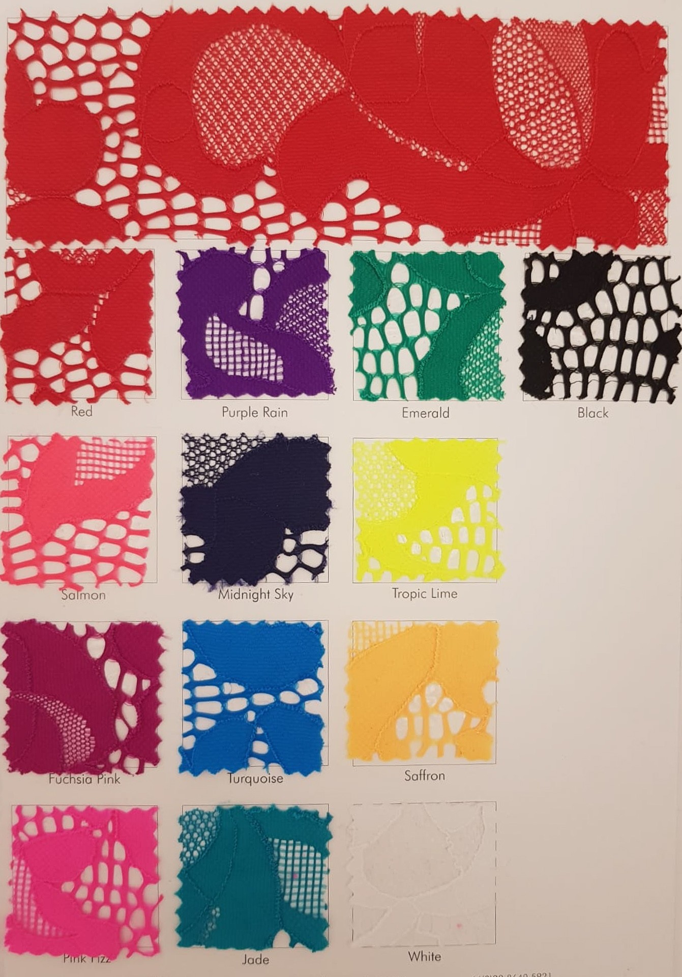 Dantela Elastica Geometric Chrisanne, elastica pe amble parti, disponibila intr-o gama variata de culori. Creați un design floral geometric pe îmbrăcămintea dvs; Arata fabulos cand este conturata cu cristale. Dimensiunea florii este de aproximativ 14cm x 12cm. Disponibil într-o gamă largă de culori. Latime: 1.5m Compozitie: 90% nylon 10% Spandex - Reviews