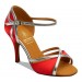 • Sanda latino fitting normal din saten rosu si imitatie piele argintie,