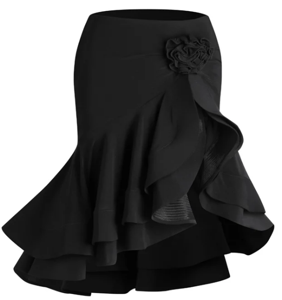 Step into the spotlight with our charming double-layer herringbone design Latin dance skirt! There is a special 3D flowers on the side, it cleverly conceals and flatters your leg shape. Radiate elegance and passion with this fabulous piece! — Model: 171cm/52kg wearing size S — Wash gently and with similar color — Material: Crystal Cotton (stretchy fabric) — With buildin underwear Manufacturer: TM ZYM, China - Comentarii