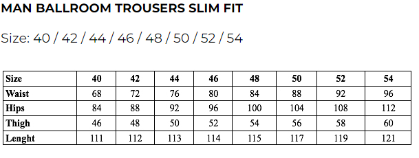 550,00 RONMens Lorenzo Fashion Ballroom Trousers These stylish pants provide a form-fitting fit and a timeless look, while allowing for comfort and ease of movement. Belt loops are included, which allow you to accessorize these versatile trousers with an iconic leather belt to make a style statement. • Stretch Gabardine • 95% Polyester, 5% Spandex • With side pockets • Front zipper closure • Hand wash under 30℃ • Designed by RS Atelier • Made in Italy